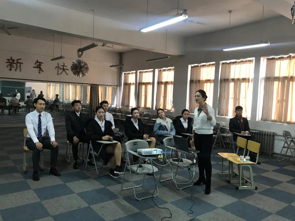 12月19日上午,外国语学院聘请山东青年政治学院舞蹈表演专业教研室主任、副教授薛亮、山东旅游职业学院培训专员马敬敬来我院对2019届校企合作(航空乘务、航空服务)学生做吉祥航空公司校招面试培训。学院党总支书记贾国斌及团总支成员到场观摩授课。
