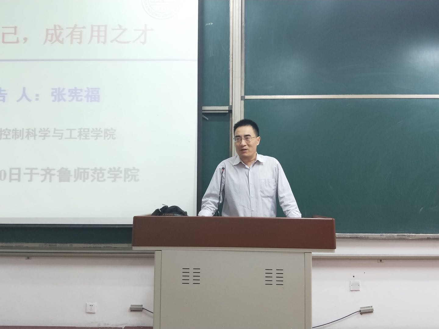 2018年9月20日下午,数学学院二号教学楼A109举行欢迎校友回家之优秀校友报告会,参与本次报告会的有94级校友山东大学博士生导师张宪福教授和2000级校友济南市延安教育培训机构创始人、董事长王延安同志。报告会由副院长张克玉主持,党总支书记孔志学、在校教师及16级、17级学生参加。
