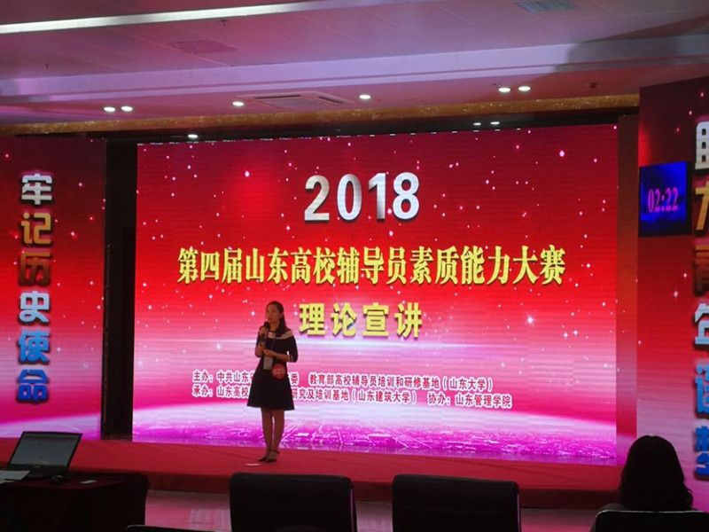 5月11-14日,由中共山东省委教育工委、教育部高校辅导员培训和研修基地(山东大学)主办,山东高校辅导员工作研究及培训基地(山东建筑大学)承办的第四届山东高校辅导员素质能力大赛暨专题培训在山东管理学院举行,共有来自全省高校131名辅导员参加比赛。金年会官网辅导员刘若杨精心备战、表现优异,荣获第四届山东高校辅导员素质能力大赛二等奖。