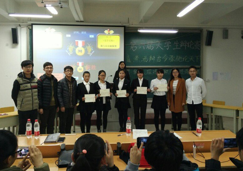 首先双方一辩用具有高度概括性的陈述为本场辩论开篇立论。然后双方二辩彼此反驳。双方二辩灵活的思维和缜密的逻辑推理,不时的赢得场下阵阵掌声。而到了比赛的第四环节自由辩论阶段,可以说是本场辩论的高潮。面对正方的引经据典,旁征博引,反方的辩手们则巧用四两拨千斤的方法,一次一次化险为夷,击破对手的观点。值得一提的是反方三辩魏蔓同学的流利辩词以及镇定从容,温文尔雅应对挑战的态度,更是赢得在场同学的阵阵掌声。最后比赛进入总结陈词环节,双方四辩各自针对对手逻辑上的漏洞逐一回击,为赢得比赛做最后努力。最终张小宾队获得团体第一名,鞠豪队获得团体第二名。共5位辩手获得“优秀辩手”荣誉。
