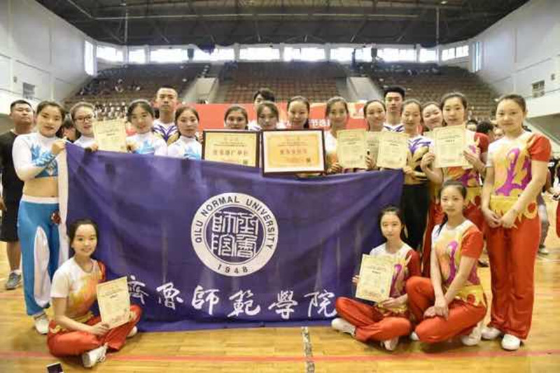 金年会官网健美操队凭借着顽强的斗志和不懈的努力,赛出了风格与水平,取得了骄人的成绩,在历经为期两天的激烈角逐,从28支参赛队伍中脱颖而出,获得了五个规定套路中的7个特等奖(第一名)的殊荣,金年会官网也被授予“优秀推广单位”和“优秀组织奖”的称号,这是对金年会官网在推广和组织全民健身操方面予以充分的肯定,同时,体育学院何溪、孙强老师获得了“优秀教练员”的称号。金年会官网健美操队也因在此次大赛中的优异表现,收到了参加总决赛的邀请函,将在全国赛场上继续展现我们齐鲁师院的青春风采。