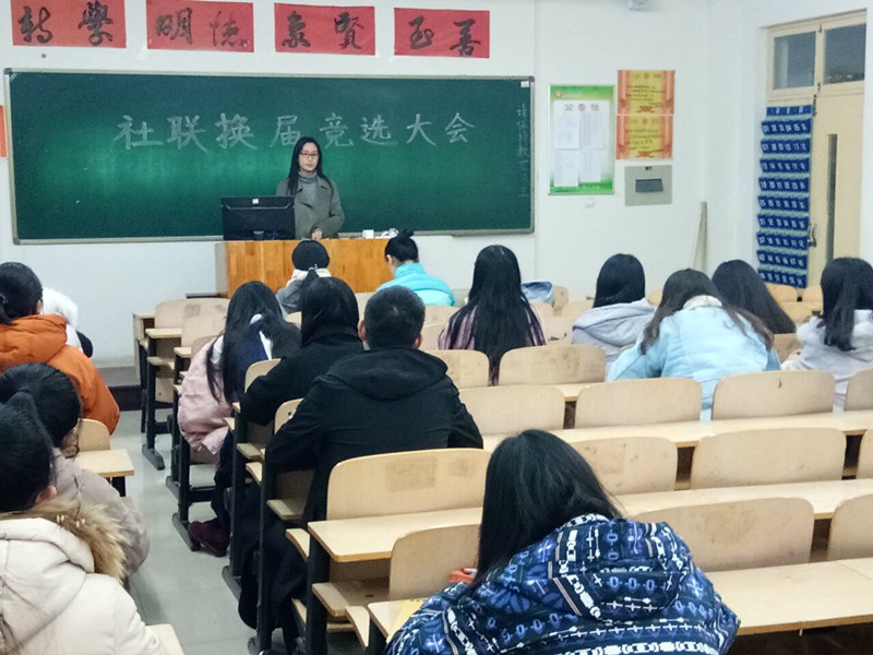为促进学院社联各项工作稳步开展, 11月16日晚,教师教育学院召开了第四届社联换届竞选大会,社团指导老师于惠,社联主席团成员、各社团负责人以及所有竞选人员参加了本次竞选大会。