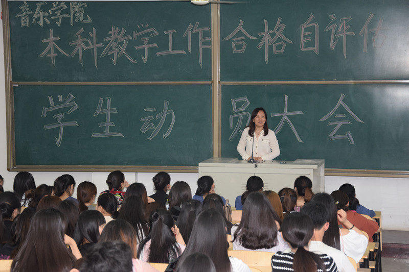 对于本次本科教学合格评估学生动员工作,音乐学院高度重视,认真组织。通过此次动员会,同学们热情高涨,充满信心,将会以饱满的热情和主人翁意识为学校的本科教学合格评估工作做出贡献。(音乐学院 王海波)
