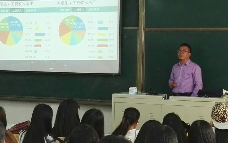 本次讲座开始由外国语学院团总支书记牛荦对主讲人杨淼先生和讲座内容进行了简要介绍。讲座过程之中,杨淼先生首先向同学们介绍了著名主持人杨澜,“中国大陆第一人”哈佛毕业生何江以及百度总裁李彦宏,腾讯CEO马化腾和阿里巴巴总裁马云等留学海外的成功人士,之后,从“why”“where”“what”“how”四个方面分析现在社会中国学生出国留学情况以及英语专业学生出国留学的选择情况。其中,杨淼先生多次与同学们进行互动,同学们积极配合,现场气氛热烈。