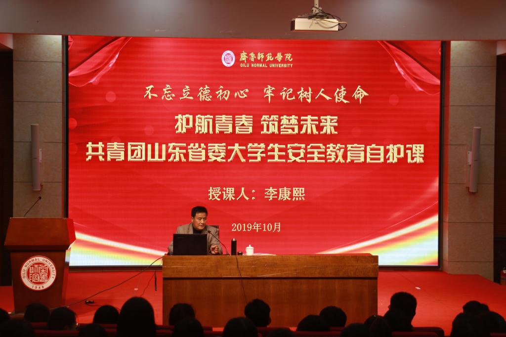 为进一步增强大学生安全自护意识,发挥基层团支部书记在服务联系团员青年成长成才中的作用,金年会官网举行“护航青春、筑梦未来”安全自护教育课。山东省未成年犯管教所犯罪研究室原主任、副研究员李康熙教授受邀担任讲课嘉宾。各学院团总支书记、副书记,全体辅导员,大一新生代表及各学院大二以上年级各班团支部书记共计400余人参与本次主题教育活动。