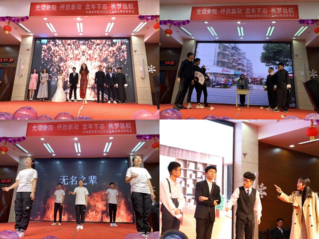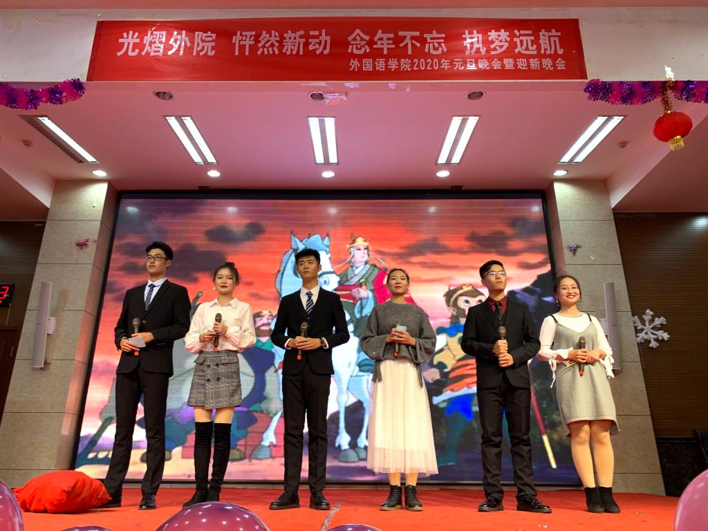 为进一步推动校园文化建设,丰富校园文化生活,提高学生的文化创造力,外国语学院于2019年12月15日举行了以“光熠外院,怦然新动,念年不忘,执梦远航”为主题的元旦暨迎新晚会。外国语学院副院长宋秀葵(主持工作)、党总支副书记郁志营、团总支书记牛荦、团总支副书记孙海燕、部分教师代表以及2019级全体同学参加了此次晚会。