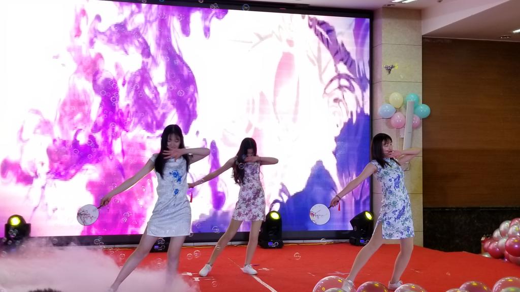 晚会一开始,充满活力、激情四射的啦啦操瞬间点燃了现场的空气。啦啦操结束后,晚会播放了我院2019年学期回顾视频,展示了我院在过去一年里取得的成绩;2019级班长和团支书带来的朗诵《让青春与梦想齐飞》,朗诵者们以端庄的姿态完美诠释了对青春与梦想的憧憬与期待;随后播放了元旦祝福视频,老师和同学们通过各种方式表达了对大家的新年祝福;一系列的歌曲舞蹈串烧,再次让现场沸腾起来;吉他弹唱《你的答案》,悠扬的旋律、深情的演唱给观众带来了一场视听盛宴;古风舞《扇舞惊鸿》借用优美的扇子,展现出了中国舞蹈的独特韵味和精神气质。