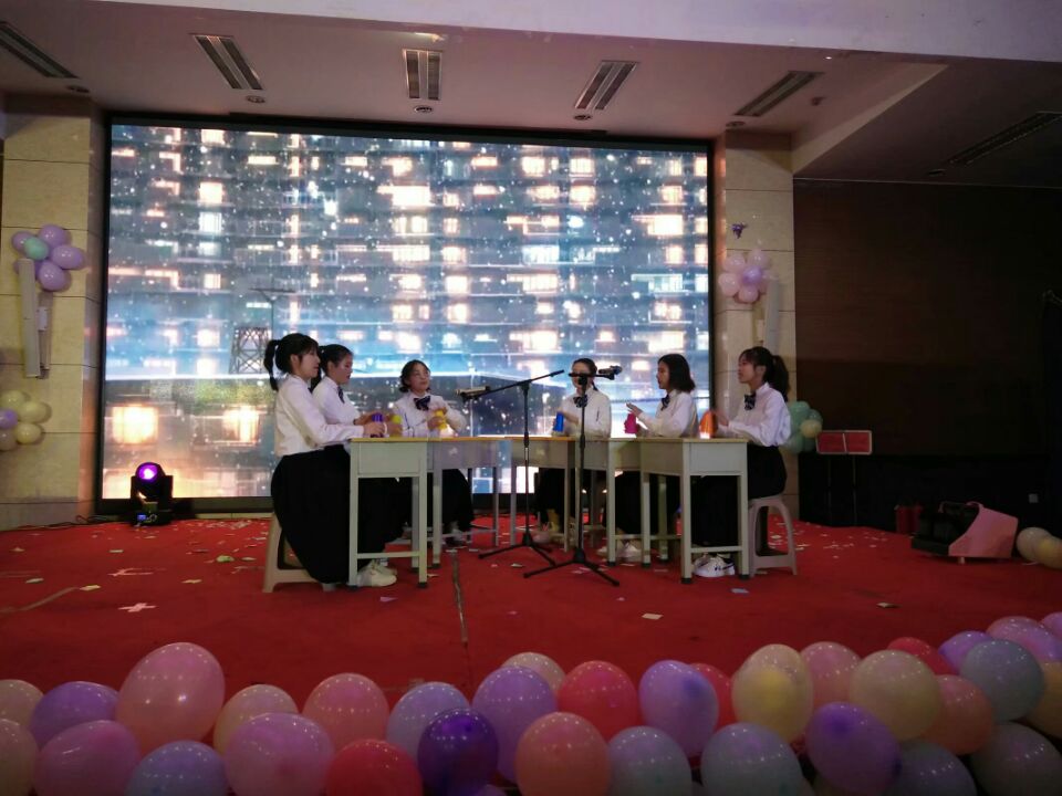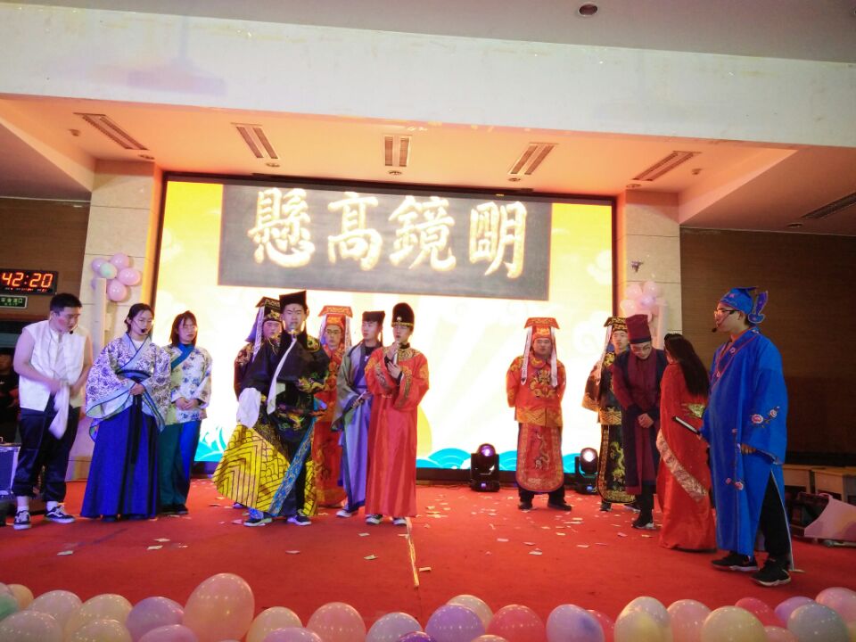 在“不忘初心—共创时代新辉煌”篇章,既有历史话剧小组对《铡美案》进行再创作,使传统戏剧曲目在新时代新形式下大放异彩,突出“人间正道是沧桑”的鲜明主题;又有啦啦操助兴,礼赞新时代。晚会最后,李红艳院长、张延昌书记等老师与全体参演者一同走上舞台,一起高唱《不忘初心》,并合影留念。