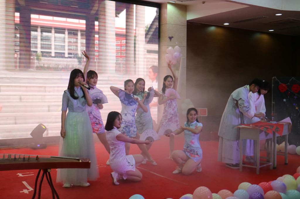 在“秉承传统—我与时代共奋进”篇章,既有书法表演《水墨书韵》牢牢吸引了在场观众的眼球,笔墨挥洒之间,书写了对历史与社会发展学院的无限热爱;也有以风趣幽默的动作、诙谐调侃的语言令在场观众笑声连连的对口相声《口吐莲花》。