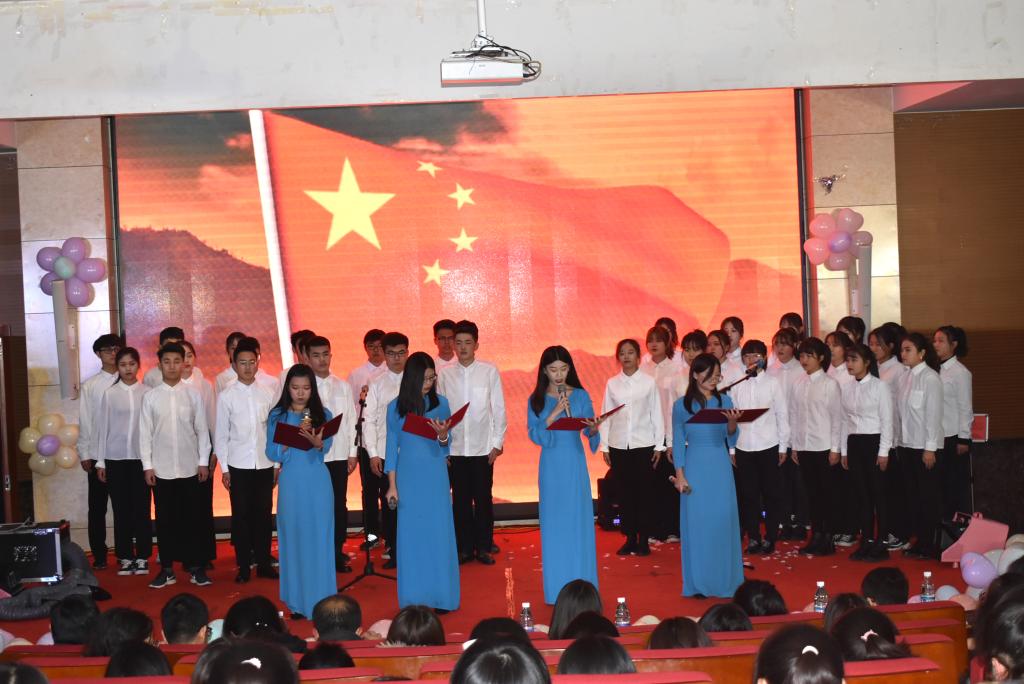 在“锦时筑梦—奔跑在追梦路上”篇章,同学们朗诵《我是中国人》,赞扬伟大的中国人民;高唱《共筑中国梦》,表达对伟大祖国的热爱。