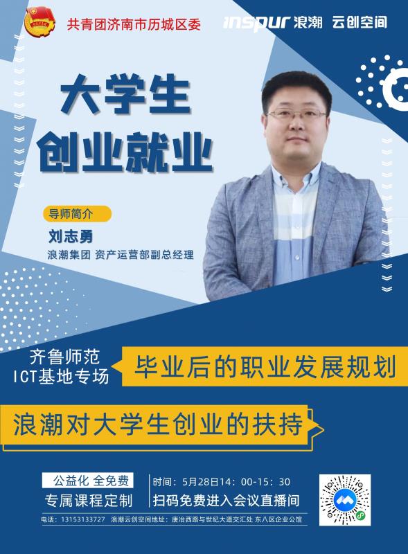 ICT基地组织浪潮科创中心校园专题讲座5月28日,为了在疫情期间加强对同学们的职业素质培养,提升对就业、创业及行业企业等方面的深入认识,齐鲁师范ICT产教融合创新基地项目经理邓勇特邀请浪潮集团资产运营部副总经理刘志勇先生为同学们进行《浪潮科创中心就业创业校园行》的线上主题讲座。 讲座通过腾讯会议的方式进行,基地校企合作专业三个年级共200多名学生参加了此次讲座。