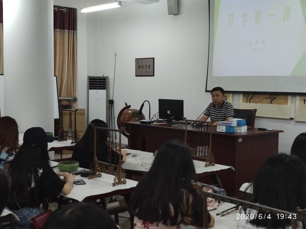 为做好学生返校后的疫情防控工作,厚植爱国主义情怀,让同学们更好的适应返校后的学习生活,保证教育教学工作平稳有序开展。6月4日晚,文学院党团总支负责人在章丘校区为返校学生讲授“开学第一课”。