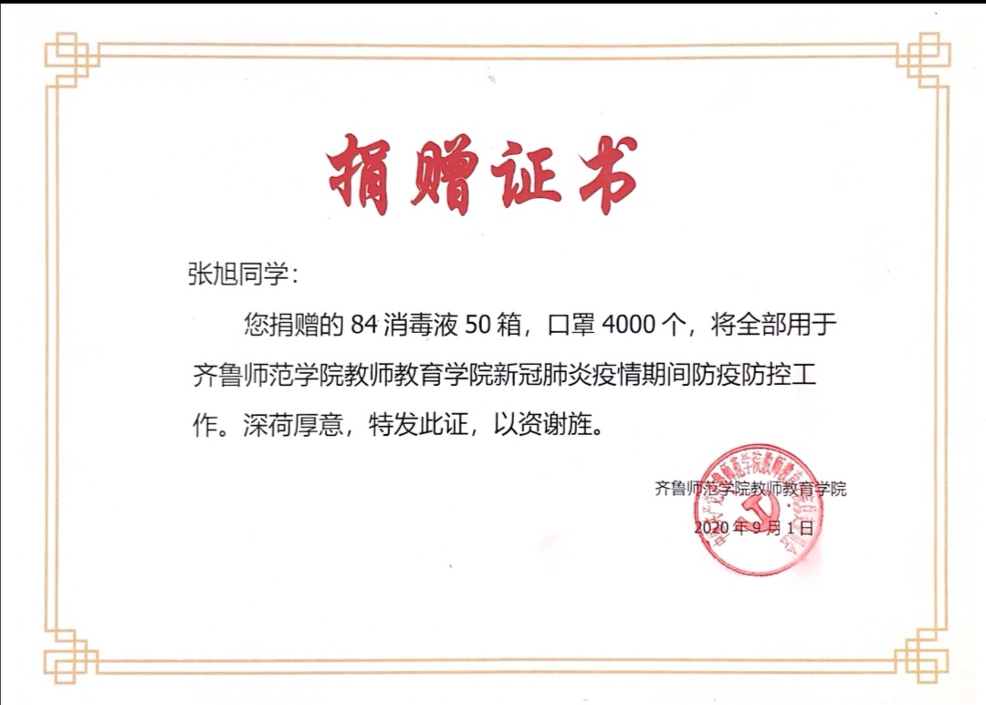 学子有义,情系母校,张旭和刘美君为同学们树立了良好的榜样,赠于情,行于义,爱于心,她们的行为将带动更多的人奉献爱传递爱。学院将严格管理和使用捐赠资金和防疫物资,做到物尽其用、物尽所值。