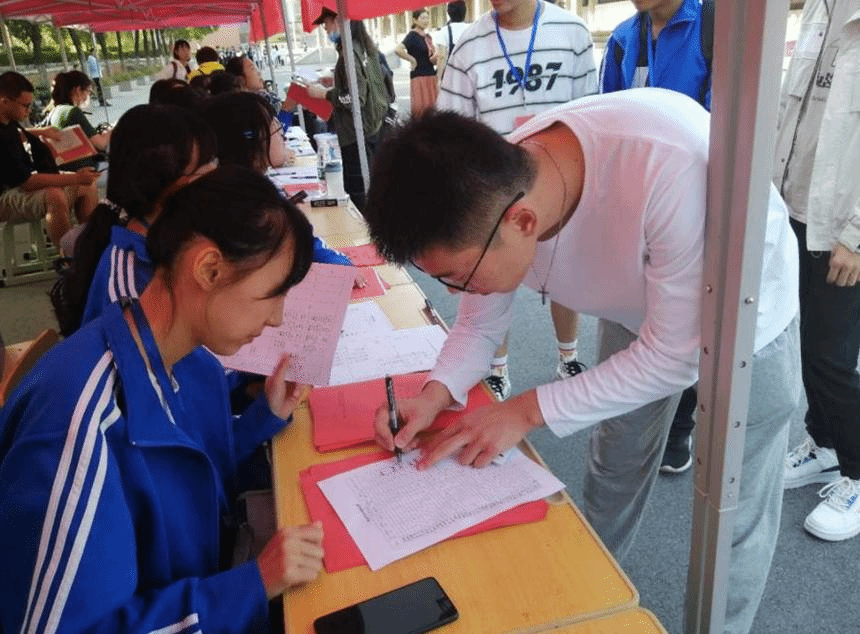 2018、2019级学生会成员正在等待新生到来