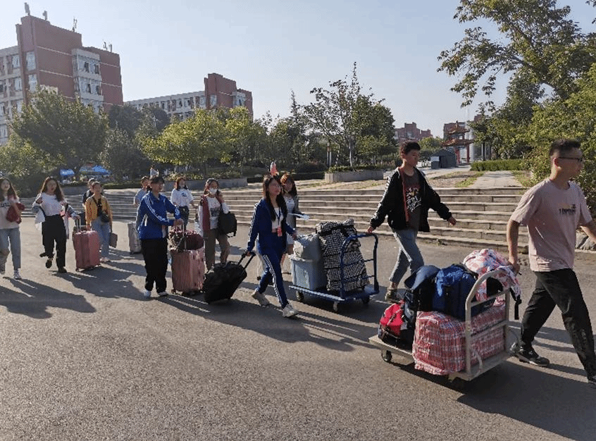 学生会成员正在为新生搬运行李