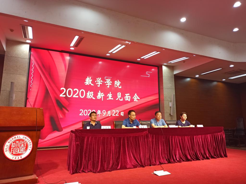 9月22日上午,数学学院2020级新生见面会在图书馆学术报告厅举行。院长王建国、副院长张克玉、党总支副书记初益辰,新生班主任、辅导员以及在校老师出席本次会议,142名新生参加了见面会。会议由学院党总支书记孔志学主持。