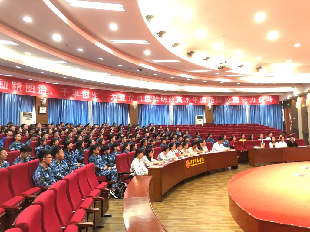 会议开始,2020级数学与应用数学专业(公费师范生)史恬瑜同学代表新生发言。她表示,站在人生的新起点上,应当对自己提出更高要求,秉持“博学明道 崇德象贤”的校训,努力提升自身的学术水平和道德素养,做好学业规划,不断探索前行。老生代表刘锦鹏同学向学弟学妹们讲述了自己在校生活的感悟,强调了大学环境里的机遇与挑战,激励大家用勤奋书写青春,让知识改变命运。