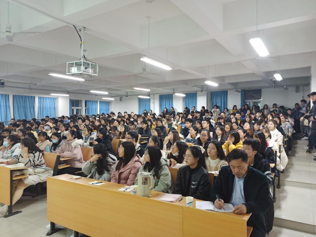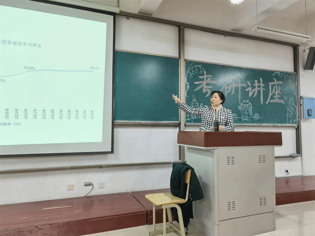 为帮助2018级考研学子进一步了解考研政策,把握考研趋势,增强考研信心,11月26日晚,数学学院在二号教学楼A405教室举办了考研专题讲座。此次讲座特邀马克思主义学院党总支书记王晓梅教授担任主讲嘉宾,数学学院党总支书记孔志学出席并主持讲座,团总支副书记孟凡湘、2018级全体学生以及部分低年级学生参加讲座。