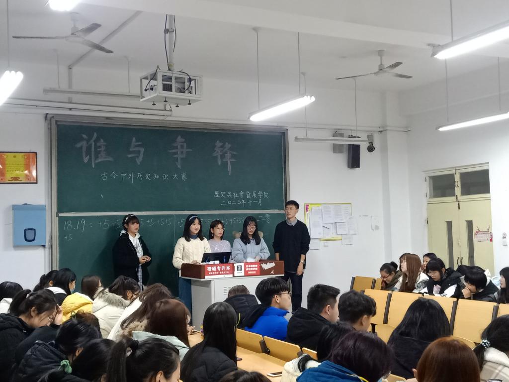 为落实“立德树人”根本任务,进一步提升新时代下我院学子历史文化素养,检验同学们的知识储备和学习能力,在历史学专业老师的指导下,历史与社会发展学院于11月26日晚自习在二号教学楼A215教室举办了古今中外历史知识大赛,18、19、20级历史学专业全体学生参加了本次比赛。