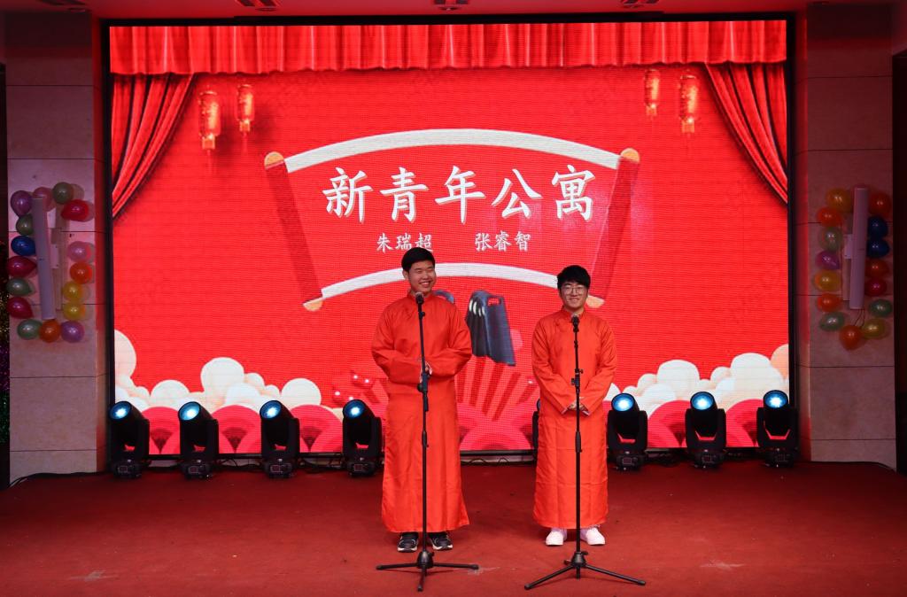 一首热烈欢快的《好运来》中拉开了晚会的帷幕;相声《新青年公寓》绘声绘色地讲述了大学宿舍里生活真实写照,带来逗笑的同时也启人深思;歌曲《无与伦比的美丽》声情并茂地演绎出最真挚动人的友情;配音《寻声》用电影配音的形式,带观众重温国漫的巅峰,感受不一样的经典;诗朗诵《少年中国说》气势磅礴地展现出青年同国家荣辱与共的担当和赤心报国的浩然志向;小品《努力要趁早》活灵活现地上演了梦想成名的桥段,揭示青年有梦当追梦,岂放岁月空蹉跎的道理;歌曲《你要跳舞吗》带动了现场的氛围,欢快明畅的歌声表达出无论身处何方,也要保持对生活充满热爱……《挑战关键词》与《吃得快》这两个游戏创意新颖、妙趣横生,师生们兴趣盎然、互动踊跃,现场气氛热烈浓厚、充盈着欢声笑语,在寒冬中为现场的师生心中注入了浓浓暖意。