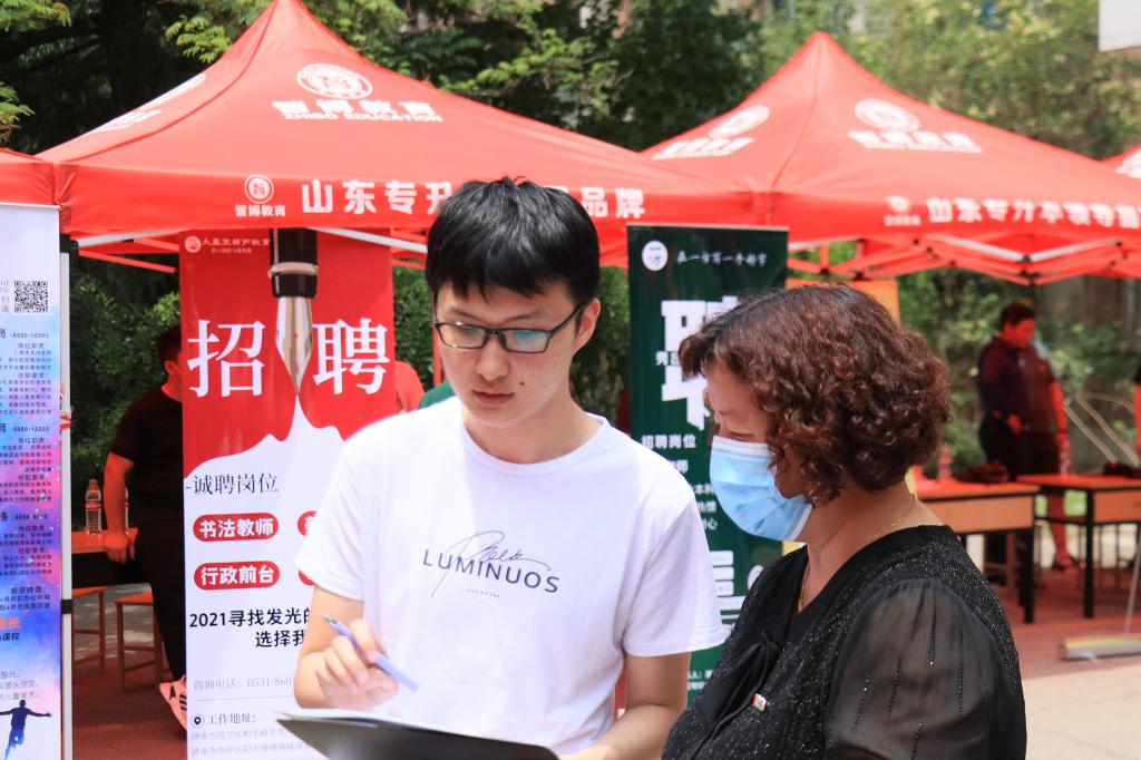 6月9日上午,JINNIAN金年会美术学院毕业生就业双选会在历下校区举办。本次双选会吸引了200余名毕业生同学现场参加。华图教育集团、济南市青少年宫、米多多少儿艺术、诚励书画教育等23家用人单位来校开展宣讲和双选活动,为2021届毕业生提供80多个优质招聘职位。