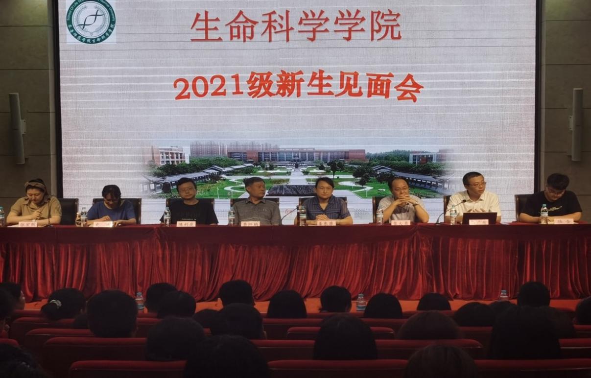9月13日下午14:00、15:00,生命科学学院在学校章丘校区学术报告厅举行了两场2021级新生见面会。院长李师鹏、党总支书记姜东菲、副院长崔大勇、党总支副书记陈利虎、院长助理史远、团总支副书记张宏熙、辅导员房继德、祖群、徐茜茜、陆含,以及新生班主任段广有、关志炜、徐翔、杨欢欢、陈存、杨俊杰和2021级全体新生参加了见面会。见面会以“开启新征程,创造新辉煌”为主题,学院领导和老师们对新生们表达了热烈欢迎,也提出了殷切希望。