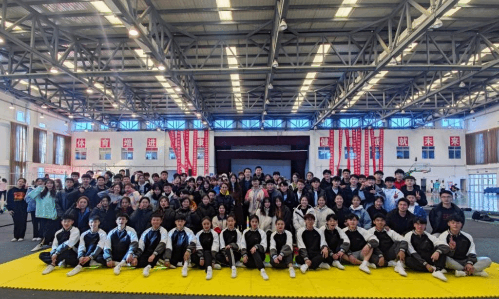11月30日上午,体育学院健美操代表队出征山东省第十六届大学生运动会健美操比赛动员大会在体育馆举行。体育学院院长朱礼恒、党总支副书记李萧及教练员、运动员参加此次动员大会。体育舞蹈专业全体学生来到动员大会现场,为参赛队员鼓舞士气!