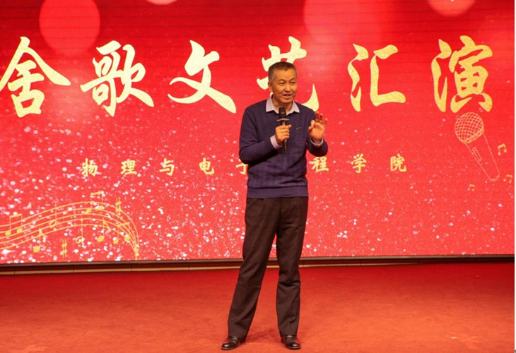物理与电子工程学院领导高度重视本次晚会,教师们积极参与,同学们踊跃报名,历时两个月的筹备,最终圆满落下帷幕。学院党总支书记陈宝金、组织委员庞守荣、实验管理中心副主任姬长建、学院党总支副书记臧葳、院长助理刘萌等出席,各任课老师及全体辅导员参与晚会的排演与演出。