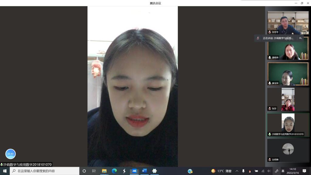 为了保证学生毕业论文工作的顺利进行,根据学院毕业论文工作安排,3月16日下午,数学学院举行了2018级学生毕业论文的开题答辩会。由于疫情防控的需要,本次采用线上答辩的形式。