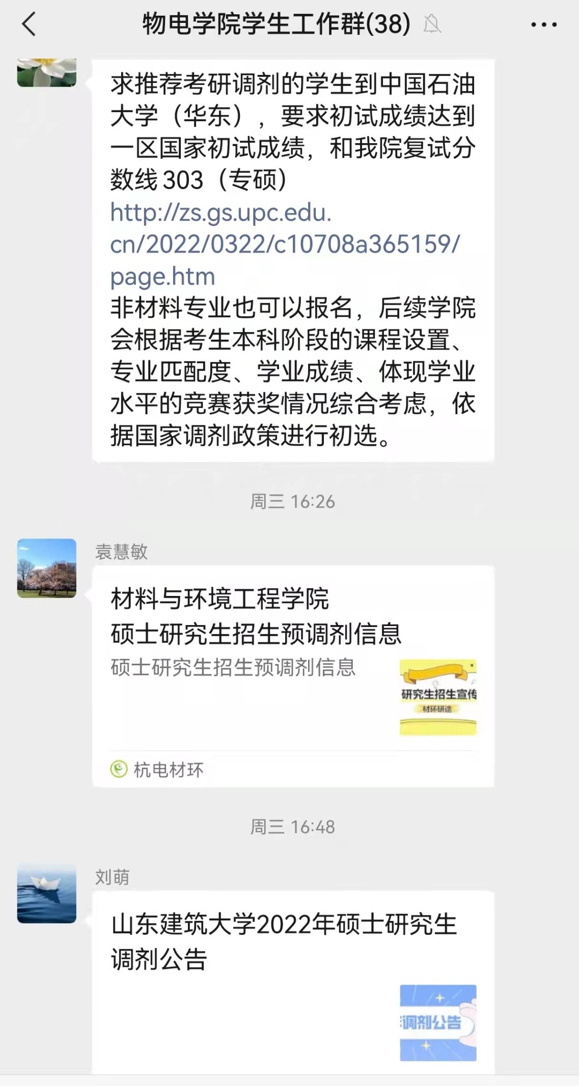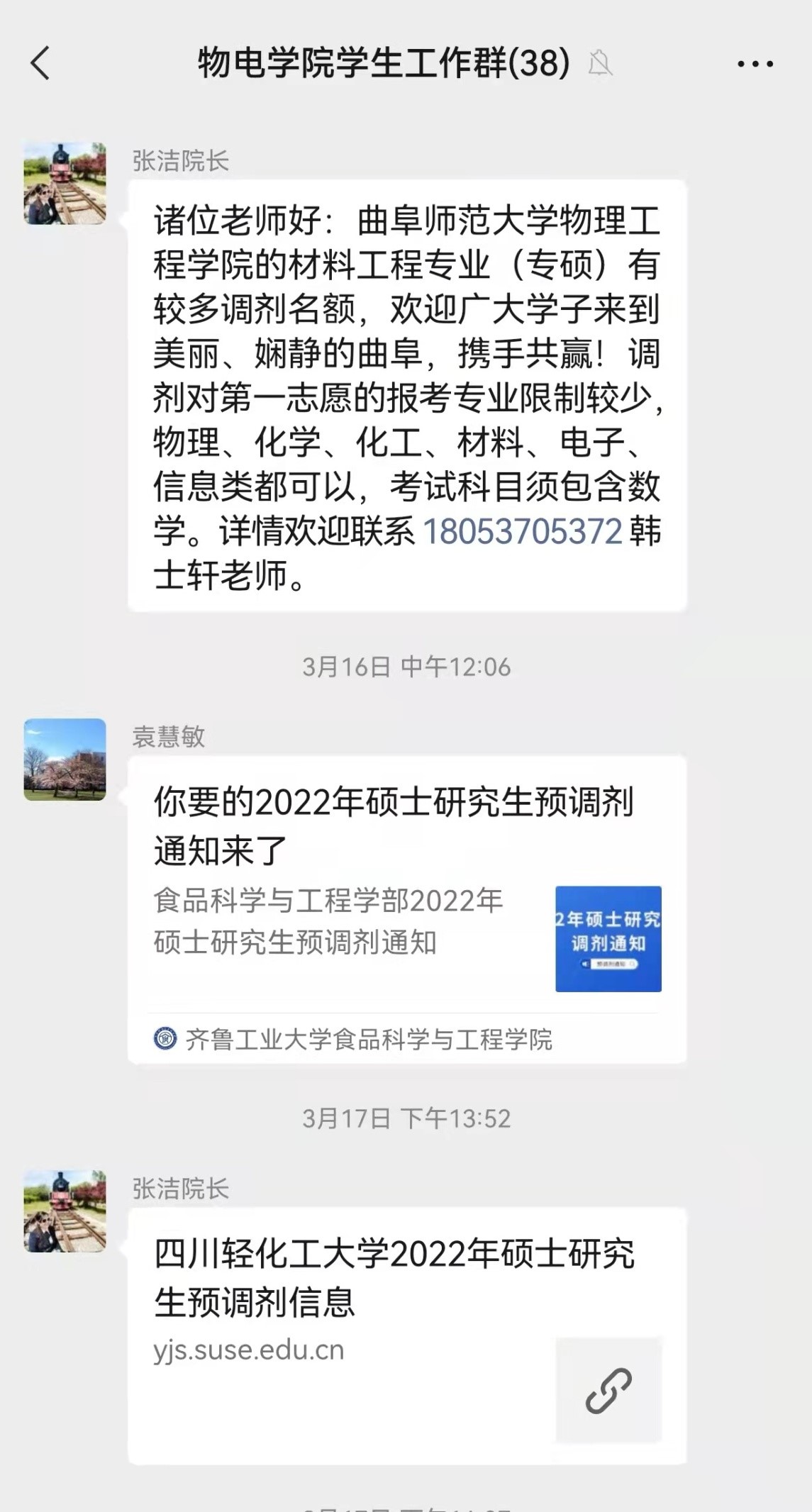 专业老师传经送宝。为精准做好特殊时期考研学生帮扶工作,学院通过各种方式帮助同学们查询各高校相关专业调剂名额。专业老师开展考研复试答疑,讲解了复试政策、心态调整、调剂形势、面试技巧等为复试学生保驾护航。