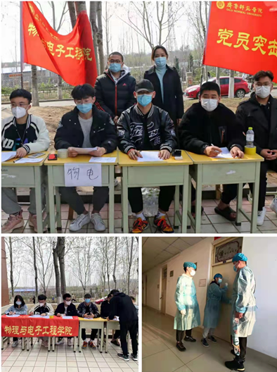 在疫情形势格外紧张时,物电学子并没有打乱阵脚,而是根据学校、学院疫情防控要求积极参加志愿服务,相互鼓励,相互扶持,成立了物电学院疫情防控机动组,每天配合留守老师们维护校园正常生活与学习秩序,主动请缨参加核酸检测场地值班任务,并号召同学们制作防疫电子海报,为避免校园内的交叉感染而努力,为学校筑起一道安全城墙。