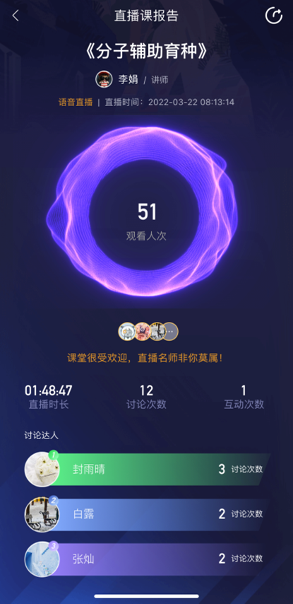 生命科学学院教师服从统一安排,自觉适应教学新形式,积极投身教学新战场,勇当先锋、勇挑重担,切实履行育人责任。学院针对线上、线下教学媒介差异性所带来的教学形式的改变,秉持“两手抓”的原则,提升线上教学质量。一手抓教,各课程教学团队通过集体讨论课程内容建设、教学进度设定、教学方法研究,细化重点知识点,展开适合线上教学的教学设计、制作资源、整理课堂测试和讨论题目。采用QQ群课堂、钉钉、腾讯课堂等直播平台与智慧树、超星学习通线上教学平台,打造“录播实操过程+直播实操难点+云上教学互动”的教学组织形式,保障教学实效。多渠道确保线上教学有序有质开展;一手抓学,线上教学时学生容易放纵导致学习变成形式,教师们通过5个维度检测学生学习实效:通过大数据分析,教师掌握学生学习行为,对于活动参与率低、完成学习时长短的同学单独跟进;通过作业与任务设计,让每个或每组同学完成任务具有唯一性,避免抄袭行为,检测学生是否有效学习;通过团队汇报、小组QQ群上传任务录制视频,检查学生任务完成情况,督促项目进度完成;通过随机测试、讨论、提问、小组PK等活动的开展,看学生知识掌握情况,对于错误率高的知识点要再讲解;通过头脑风暴、学生演示、学习总结等活动,检测学生解决问题、知识迁移的能力。通过抓教抓学,在教材内容、课程资源、实操过程、课堂测验、小组PK、学习讨论、互动答疑、拓展知识链接等方面,为学生打造了“一站式”学习过程。