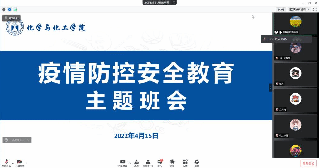 4月15日,化学与化工学院围绕“树牢总体国家安全观,感悟新时代国家安全成就,为迎接党的二十大胜利召开营造良好氛围”的主题,转发安保处全民国家安全教育的推文链接,向各班宣传普及了总体国家安全观的五大要素和五对关系、国家安全的具体内容,以提升同学们的国家安全意识,推动全民国家安全观深入人心。