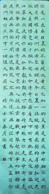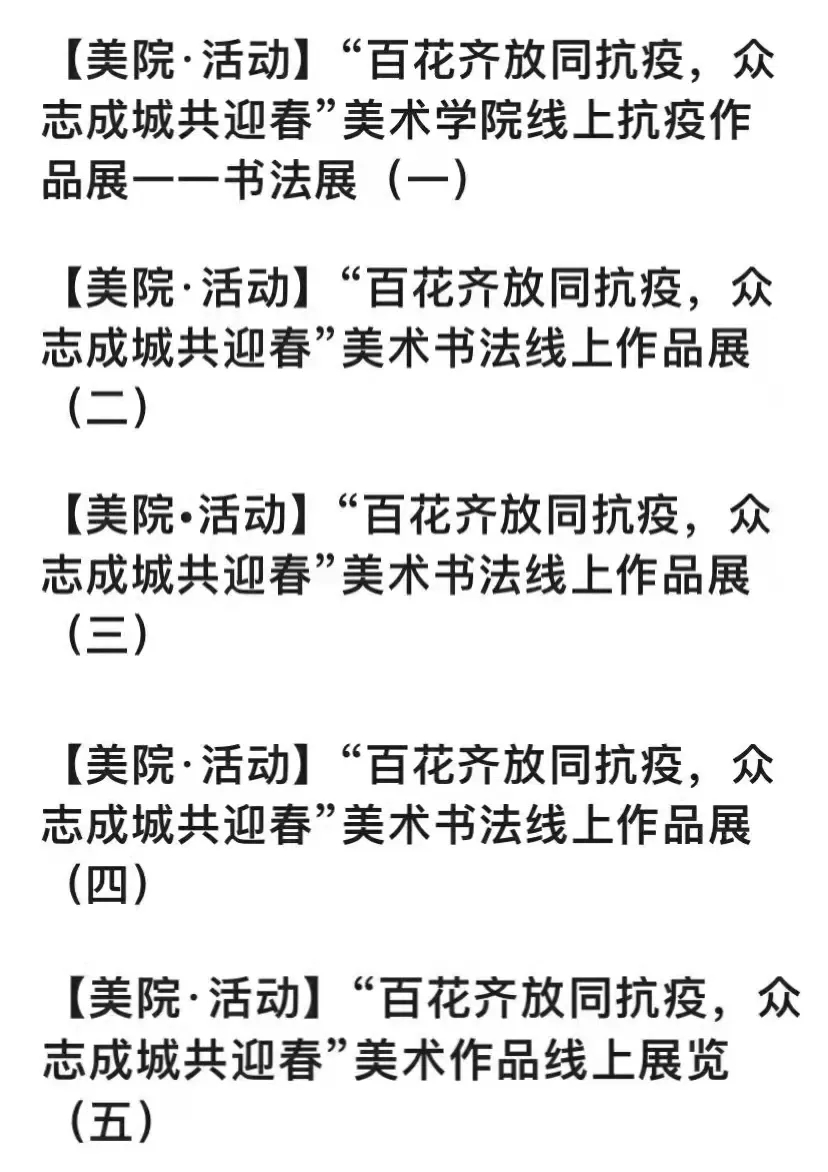 没有一个冬天不可逾越,也没有一个春天不会到来。美术学院“百花齐放同抗疫,众志成城共迎春”线上美术书法作品展的举办更加坚定了师院师生团结一心,众志成城,打赢疫情防控阻击战的信心和决心。