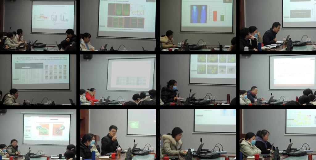 会上,16名研究骨干对2023年的研究进展和2024年的研究规划进行了详细汇报。高珊博士、李娟博士、刘晓楠博士围绕EXO70s基因家族在植物根系发育、花粉管生长和植物环境应答等方面的作用机制进行了详细汇报;刘婧博士、马梅博士、杨欢欢博士围绕IDDs基因家族在植物干旱胁迫、开花时间和叶片极性发育等方面的研究工作进行了汇报;谭子龙博士结合国家自然基金项目的研究进展介绍了HTG1在高温响应中介导细胞死亡的相关成果;徐翔博士介绍了大尺度生态研究模型方面取得的成果;李丹博士对玫瑰遗传转化体系、关键功能基因研究进展进行了汇报;于昕博士对表观遗传学相关研究进展进行了详细汇报;2023年新进博士梁晓辉、王庆彬、李超群、张开月、谢传恬结合研究背景和实验室研究方向的对接进行了简要规划介绍;研究生郭宁对2023年的研究进展进行了汇报。每位师生汇报结束后,与会人员结合汇报人的课题申报、论文发表和成果奖培育情况,就研究的科学问题及研究思路进行了积极交流与讨论。最后,实验室全体成员针对植物学学科研究方向、团队建设、平台建设、项目申报、实验室管理等方面进行了充分讨论。