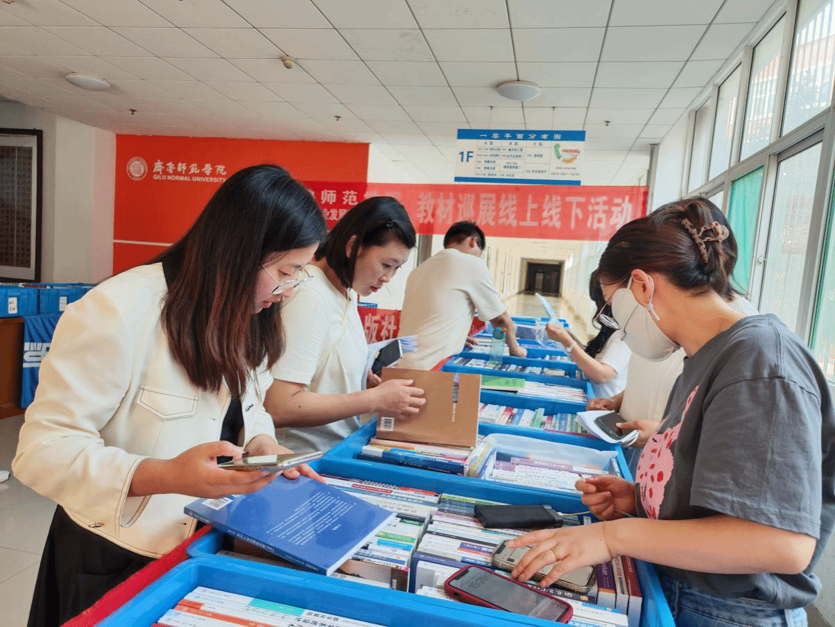 为进一步促进优质教育资源共享,推动教材建设与教学改革深度融合,高质量完成教材征订工作,5月23日,图书馆举办了2024年高校教材巡展活动,12家出版单位、近百名教师参加活动。