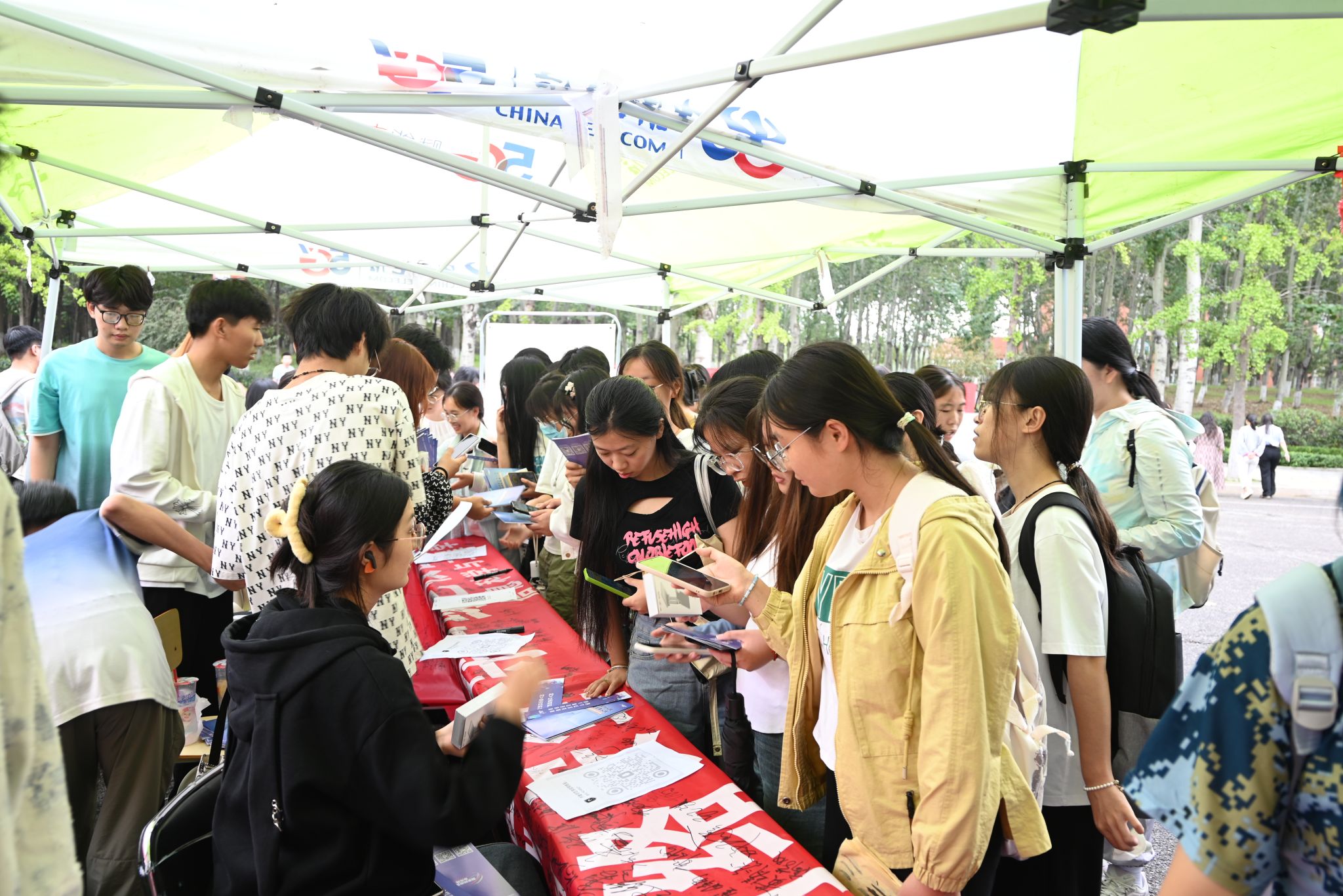 学院设立宣传摊位,通过展示色彩鲜明的海报,分发详尽的网络安全手册等措施,宣传网络安全基础知识、网络风险防范与个人信息保护等内容,吸引师生驻足学习并积极参与横幅签字,共筑网络安全防线。
