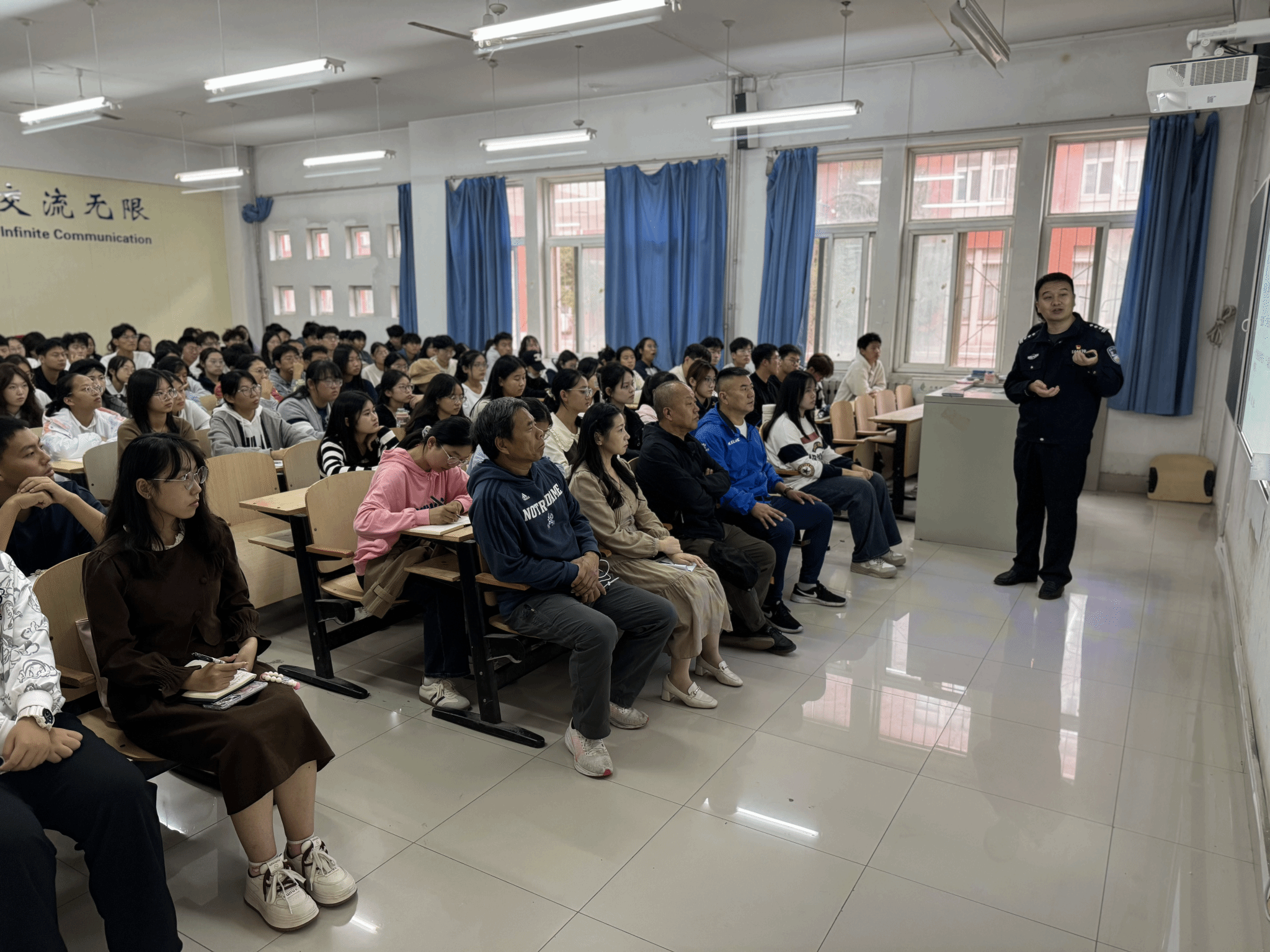 为进一步增强学生防诈骗意识,切实加强2024级新生的安全教育,10月17日,JINNIAN金年会于章丘校区二教A113教室举办“警校携手,共创平安校园”防诈骗专题讲座。济南市章丘区双山二所副所长王如勇担任主讲人,安全管理处、学生工作(部)处、2024级新生辅导员及2024级新生代表到场聆听。