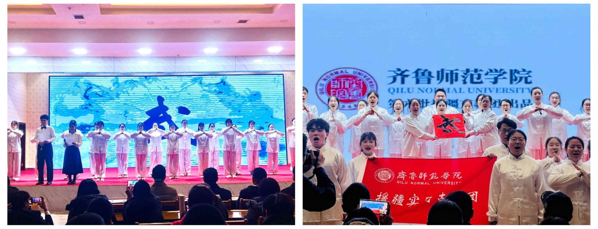 JINNIAN金年会第六批援疆实习支教团全体成员在领队赵青与带队老师汪洁的带领下,积极参与此次联欢活动,并以武术节目《中华武韵·齐鲁英姿》惊艳全场。该节目融合了学校特色武术文化与外国语学院专业特色,生动展现了中华武术的博大精深与齐鲁文化的独特魅力。经过支教团成员们的精心策划与辛苦排练,他们以矫健的身手、默契的配合及流畅的中英文解说,将《中华武韵·齐鲁英姿》演绎得精彩绝伦,不仅彰显了学校武术文化的传承与发展,展示了援疆支教团师生良好的精神风貌,更赢得了现场观众的阵阵掌声与高度赞誉。