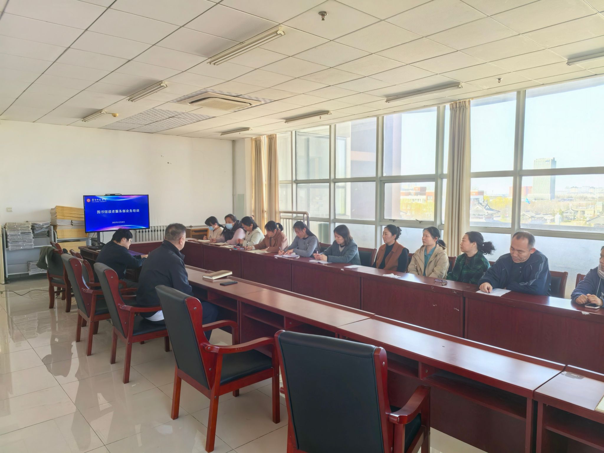 为全面提升读者服务水平,深化服务内涵,强化图书馆馆员服务素质和业务能力,确保读者得到更加专业、贴心的服务,图书馆于3月20日下午开展专题业务培训。本次培训以“专业赋能,服务升级”为主题,旨在通过系统化学习与实践演练,强化工作人员的专业素养,推动图书馆服务向精细化、智能化方向发展,图书馆读者服务部全体员工参加培训。