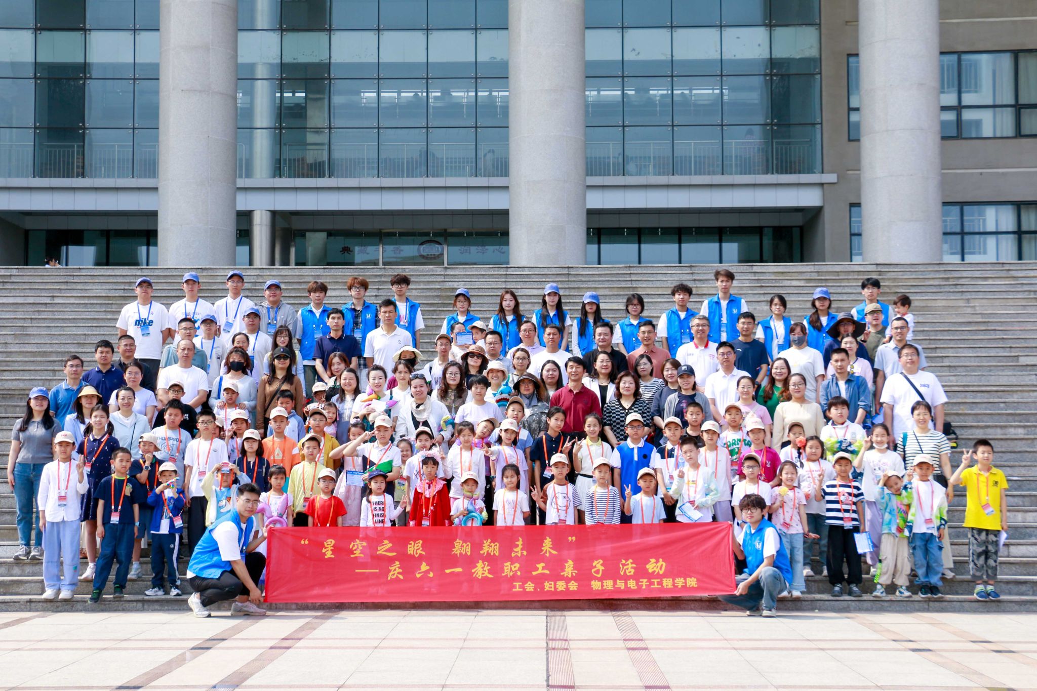 为弘扬科学精神,营造家庭文明新风尚,5月25日上午,由校工会、妇委会主办,物理与电子工程学院承办的“星空之眼·翱翔未来”庆六一亲子研学活动在章丘校区圆满举行。学校党委委员、统战部部长宋新刚出席活动并讲话,来自学校教职工共60多个家庭共同开启了一场融合科学探索与亲子温情的奇妙之旅,活动由妇委会主任兼工会副主席马海涛主持。