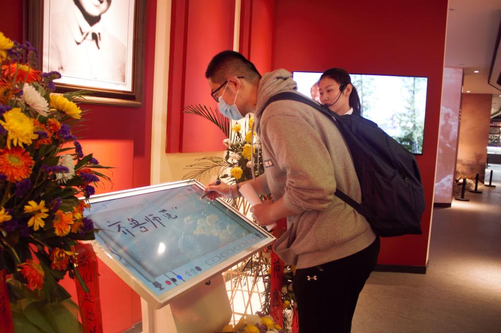 学生党员李斌代表文学院学生党支部在辛锐纪念馆留下签名