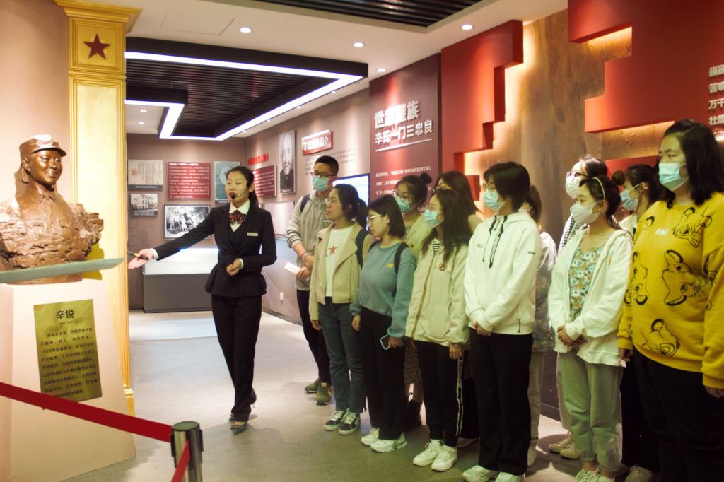 辛锐纪念馆一期有两个展厅,分别从“世家望族、辛氏一门三忠良,家系国运、为救亡图存奔走,投身革命、奔赴抗日前线,革命情侣、战火中的爱情之花、转战大青山、血洒沂蒙山区”等九个篇章展示了烈士辛锐年轻短暂而又伟大壮烈的一生。全体学生党支部党员及党员发展对象通过参观馆内实物和历史资料,聆听解说员讲解关于烈士辛锐的英雄事迹,重温了烈士辛锐年轻短暂而又伟大壮烈的一生,接受了一次生动而深刻的党性教育。