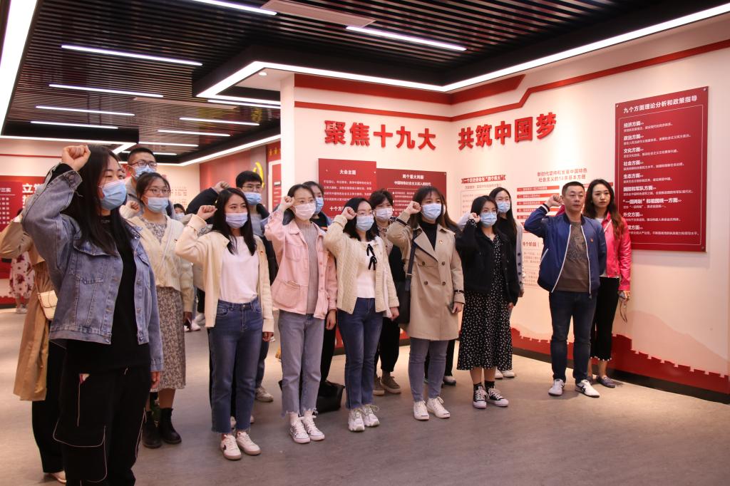 在辛锐纪念馆二期暨初心殿堂两个展厅,同学们怀着无比激动的心情,从“重走一段党史旅程、唱响一首革命老歌、经历一场时代洗礼、重温一段入党誓词、聆听一堂特色党课、定期一场党性体检、细品一本革命好书、分享一页心得感悟”八个方面,重温了中国共产党100年的光辉历程。