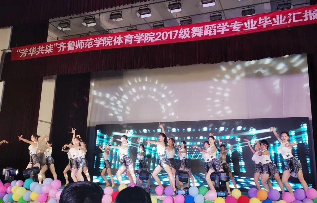 这是一堂别开生面的舞台思政课,由齐鲁师范体育学院主办,体育学院团总支承办。2017级体育舞蹈专业,是一支由40人组成的朝气蓬勃的班级,是一股积极向上的力量,四年来他们团结互爱,互帮互助,代表学校参加了无数比赛,并在山东省第八届全民健身操大赛中获得有氧舞蹈四级特等奖,第七届全国全民健身操大赛傣族舞特等奖,山东省第九届全民健身运动会“拾鼎酒业杯”有氧踏板第一名、山东省第九届全民健身运动会“拾鼎酒业杯”有氧舞蹈踩踩踩第一名,2017舞动中国-排舞联赛山东赛区专业院校组小集体规定第二名、2017山东省学校体协567GO学生杯健康活力大赛双人健美操第四名、山东省第九届全民健身运动会“拾鼎酒业杯”健美操比赛女子单人二等奖、山东省第九届全民健身运动会“拾鼎酒业杯”健美操比赛女子三人一等奖,2018年舞动中国全国排舞锦标赛单人曲目三三等奖、2018年舞动中国全国锦标赛单人曲目二特等奖、2018年舞动中国排舞锦标赛单人全能特等奖、2018舞动中国排舞联赛一等奖、2017舞动中国排舞联赛专业院校组串烧一等奖、2017舞动中国排舞联赛专业院校组自选一等奖等一系列荣誉。这个班级是JINNIAN金年会首批体育舞蹈专业,体育学院健美操教研室制定了特殊培养方案,为他们开设了体操,体育舞蹈,团体操,舞蹈编导,团体操,健身俱乐部团操等一系列课程,力求从全方面培养,并特邀外聘为他们授课,学生们积极向上,考研报考率高达90%,并有10名同学被录取为硕士研究生,其中三名同学被双一流高校录取。这支班级有一名中共党员,三名中共预备党员,是学院的得力帮手,帮助学院组织策划了不少比赛。