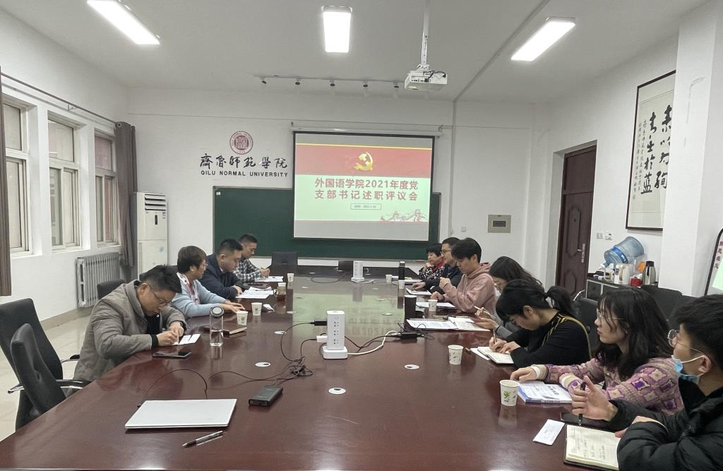 为深入学习贯彻习近平新时代中国特色社会主义思想和党的十九届六中全会精神,进一步压紧压实党支部书记严格落实全面从严治党、履职尽责做好党支部建设工作责任,外国语学院党总支按照学校党委关于做好2021年度党支部书记履行全面从严治党主体责任和抓基层党建述职评议考核工作的实施方案的要求,2022年1月10日上午,在学院会议室召开2021年度党支部书记述职评议会。外国语学院党总支书记于江、党总支委员和各支部书记参加会议。会议由党总支书记于江主持,外国语学院院长宋秀葵列席参加。