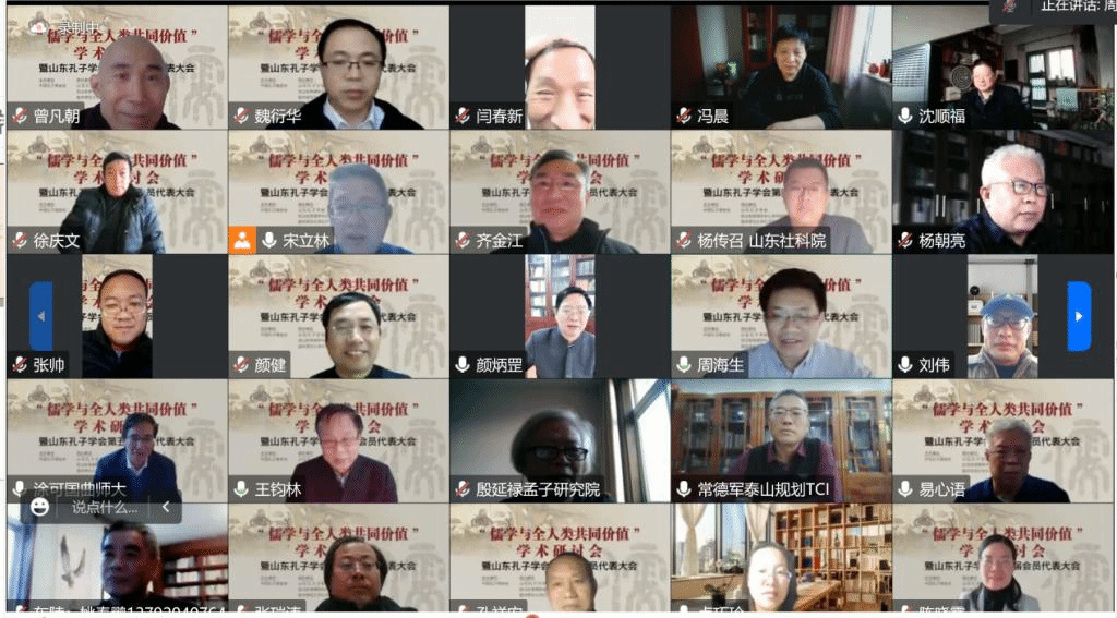 近日,“儒学与全人类共同价值”学术研讨会暨山东孔子学会第五次会员代表大会在曲阜师范大学以线上形式隆重召开。来自山东大学、山东师范大学、山东省社会科学院、尼山世界儒学中心、中国石油大学、中国海洋大学、青岛大学、JINNIAN金年会等40多家单位的200多名会员代表参加了会议,研讨儒学与人类共同价值,交流切磋孔子儒学研究最新成果。金年会官网马克思主义学院曾凡朝教授出席参加此次大会。