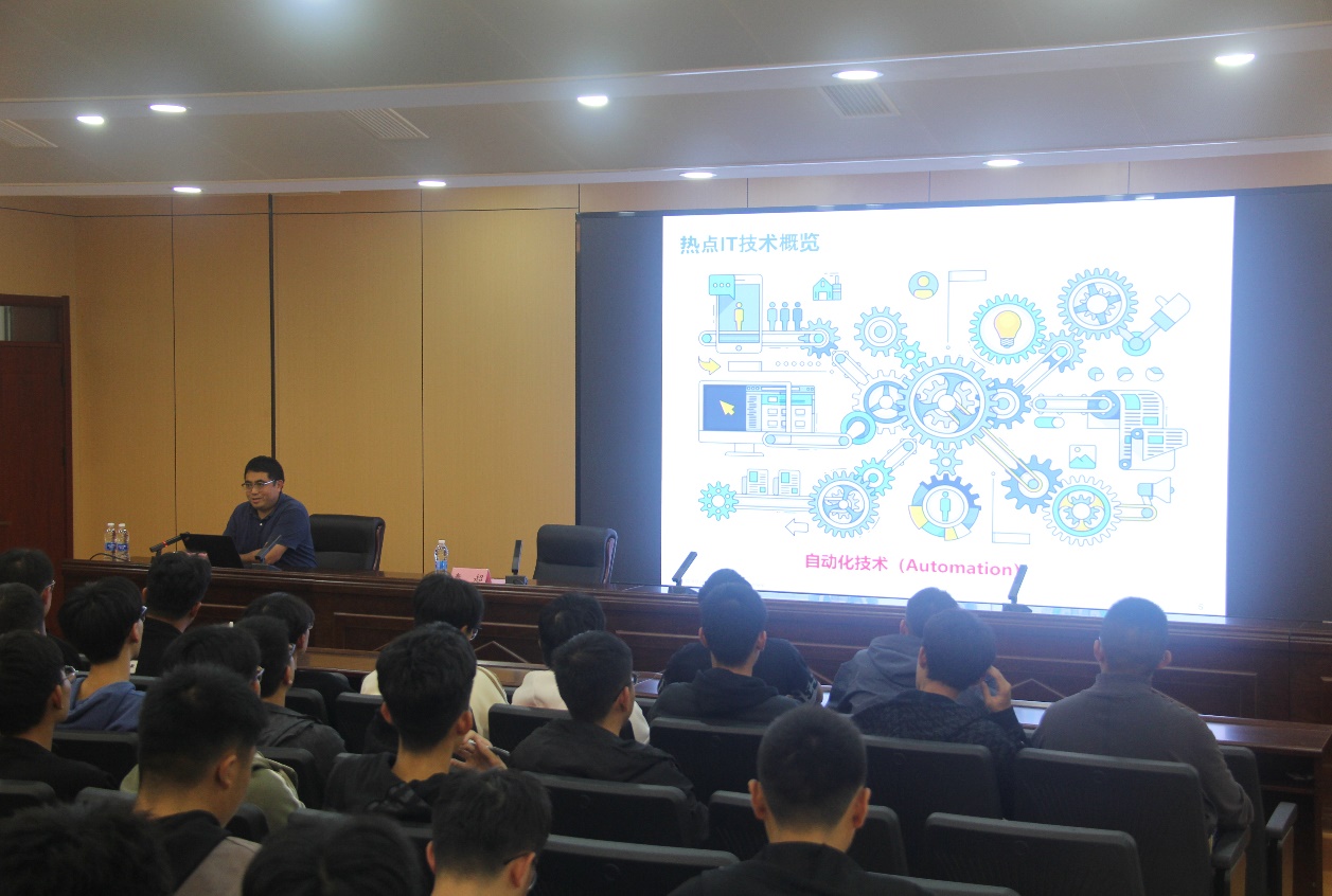 报告会上,王继彬对热点IT技术进行概述,并通过案例分析,深入浅出地阐述新兴热点信息技术的关键问题,通过前沿信息技术讲解,教授同学们如何培养自己的IT技能,让学生对未来职业发展有了更加清晰的认识。此外,王继彬还对济南超算平台进行了简单介绍,并分享了平台IT技术场景。在师生互动和交流环节,学生对报告中感兴趣的问题进行了提问,王继彬研究员一一做出了详细解答。讲座结束后,秦超进行了总结并对王继彬研究员表达了诚挚的感谢。