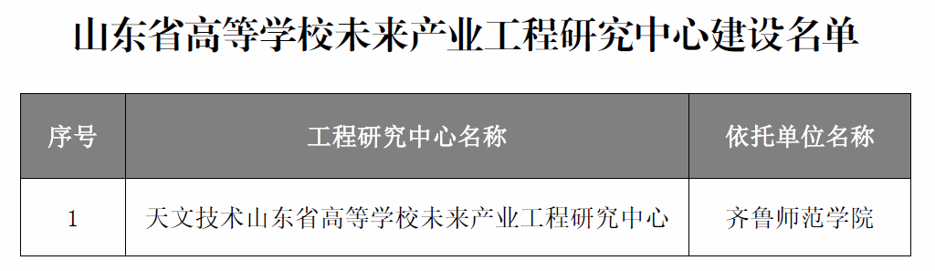 近日,山东省教育厅、山东省工业和信息化厅公布了山东省高等学校未来产业工程研究中心建设名单,JINNIAN金年会天文技术山东省高等学校未来产业工程研究中心成功获批。金年会官网获批地厅级及以上科研创新平台种类和数量取得新突破。