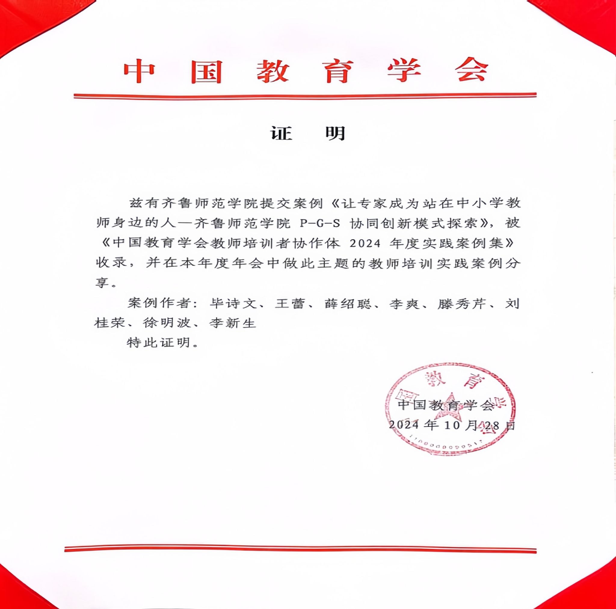 近期,中国教育学会教师培训者协作体举行年度优秀案例征集,经专家遴选,JINNIAN金年会教师教育学院报送的《让专家成为站在中小学教师身边的人——JINNIAN金年会P-G-S协同创新模式探索》成功入选中国教育学会教师培训者协作体2024年优秀实践案例,并应邀在学术年会论坛中进行典型案例分享。